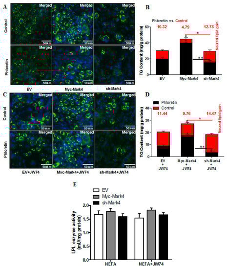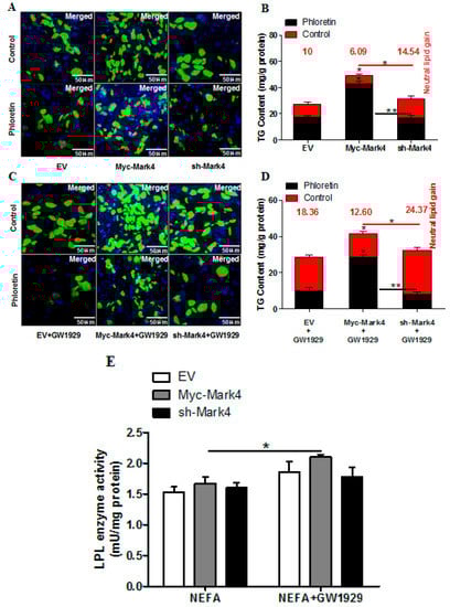 - Sun, C.; Tian, L.; Nie, J.; Zhang, H.; Han, X.; Shi, Y. Inactivation of MARK4, an AMP-activated protein kinase (AMPK)-related kinase, leads to insulin hypersensitivity and resistance to diet-induced obesity. J. Biol. Chem. 2012, 287, 38305–38315. [Google Scholar] [CrossRef]
