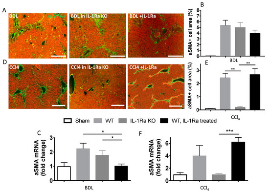 2.1.3. IL-1Ra Has Bivalent Effects on Liver Fibrosis in BDL and CCl-4-Induced Liver Fibrosis
