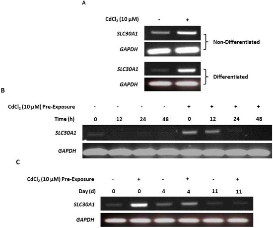 2.5. Upregulation of Zinc Transporter-1 (SLC30A1) Transcription in Cadmium-Exposed NHU Cells