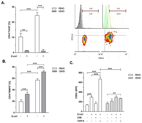Dreschers, S.; Platen, C.; Ludwig, A.; Gille, C.; Köstlin, N.; Orlikowsky, T.W. Metalloproteinases TACE and MMP-9 Differentially Regulate Death Factors on Adult and Neonatal Monocytes After Infection with Escherichia coli. Int. J. Mol. Sci. 2019, 20, 1399. https://doi.org/10.3390/ijms20061399