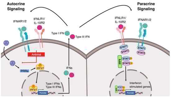 6. Kotenko, S.V.; Durbin, J.E. Contribution of type III interferons to antiviral immunity: Location, location, location. J. Biol. Chem. 2017, 292, 7295–7303. [Google Scholar] [CrossRef] [PubMed]