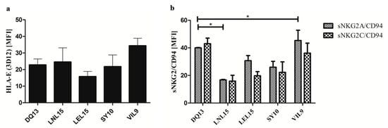 - Lee, N.; Llano, M.; Carretero, M.; Ishitani, A.; Navarro, F.; Lopez-Botet, M.; Geraghty, D.E. HLA-E is a major ligand for the natural killer inhibitory receptor CD94/NKG2A. Proc. Natl. Acad. Sci. USA 1998, 95, 5199–5204. [Google Scholar] [CrossRef]