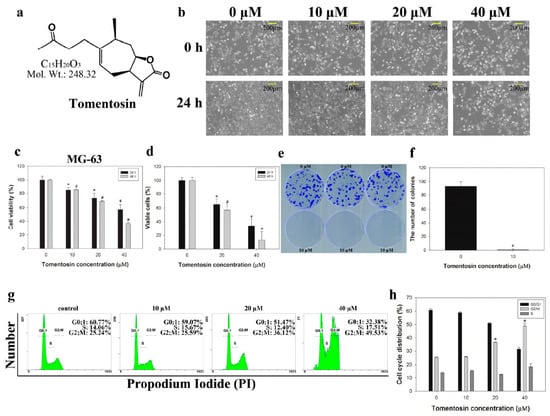 2.1. Tomentosin Inhibited Proliferation and Induced G2/M Cell Cycle Arrest in MG-63 Cells