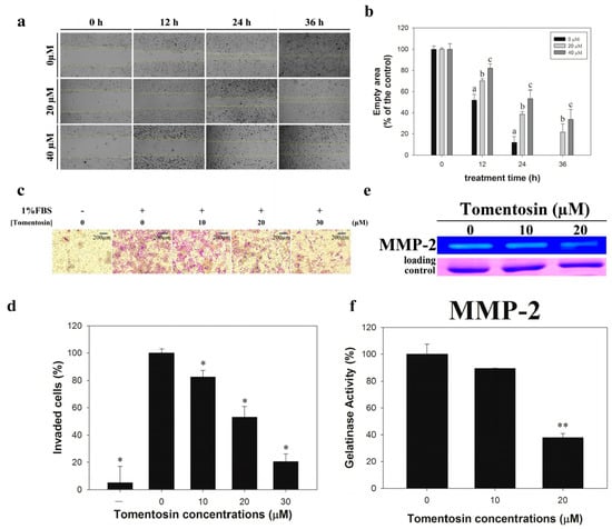 2.2. Tomentosin Inhibited Migration and Invasion of MG-63 Cells