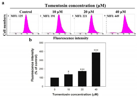 2.4. Tomentosin Increased Intracellular ROS Level in MG-63 Cells