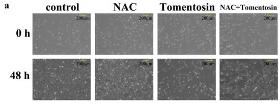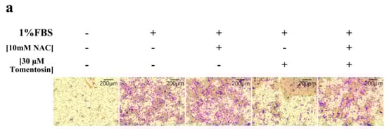 2.6. Tomentosin-Induced Intracellular ROS Inhibited Migration and Invasion of MG-63 Cells
