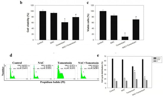 2.5. Tomentosin-Induced Intracellular ROS Inhibited Proliferation and Induced G2/M Cell Cycle Arrest in MG-63 Cells
