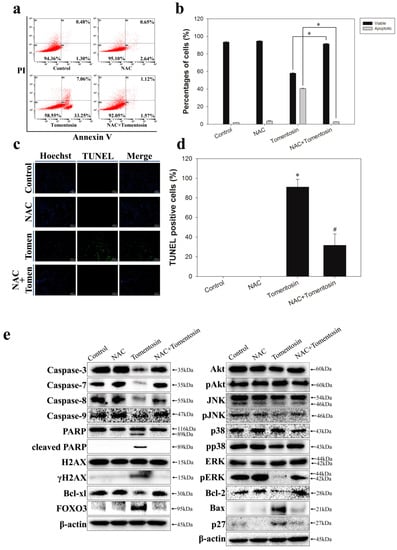 2.7. Tomentosin-Induced Intracellular ROS Promoted Apoptosis in MG-63 Cells