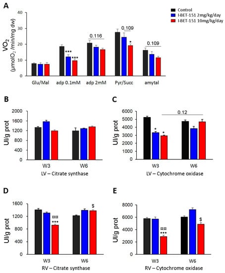 2.2. I-BET-151 Decreases Cardiac Mitochondrial Function in Healthy Rats