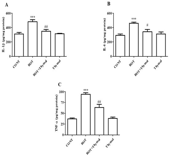 2.4. Thymol Attenuated Activation of Proinflammatory Cytokines