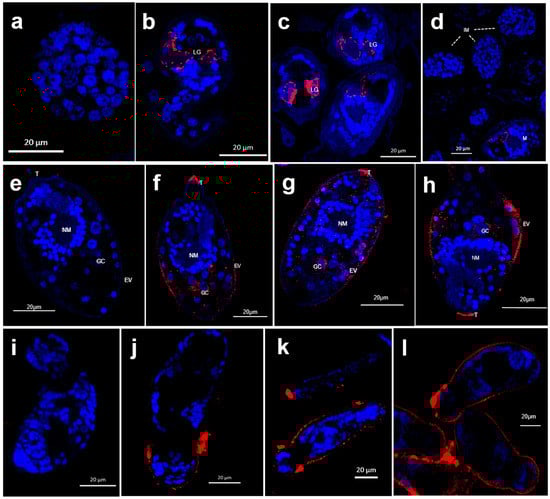 4.5. Immunolocalization of SjILP in Eggs, Miracidia and Schistosomula