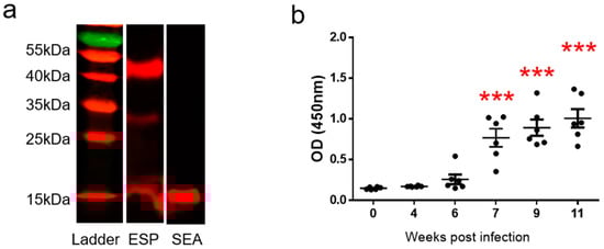 4.6. Kinetics of Anti-SjILP IgG Antibody Levels in the Sera of S. japonicum-Infected Mice Determined by ELISA