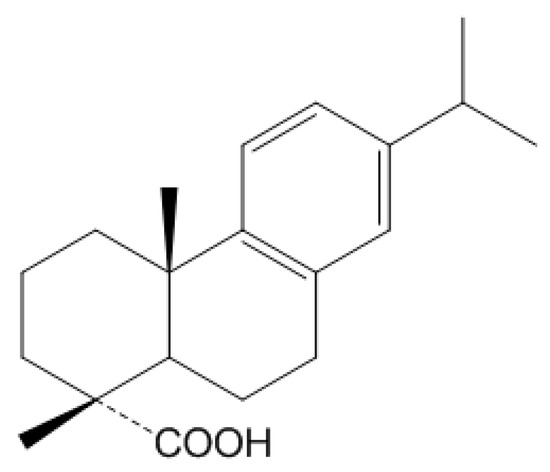 - Leandro, L.F.; Cardoso, M.J.O.; Silva, S.D.C.; Souza, M.G.M.; Veneziani, R.C.S.; Ambrosio, S.R.; Martins, C.H.G. Antibacterial activity of Pinus elliottii and its major compound, dehydroabietic acid, against multidrug-resistant strains. J. Med. Microbiol. 2014, 63, 1649–1653. [Google Scholar] [CrossRef]
