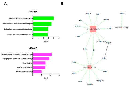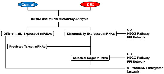 Differential analysis was carried out using the t-test by Excel (Microsoft, WA, USA). Differentially expressed mRNAs and miRNAs in the control group and DEX group were identified using parameters of p < 0.05 and at least 1.5-fold change.
