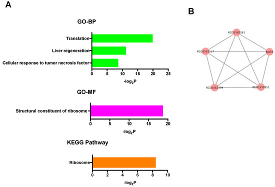 2.4. Gene Ontology (GO), Kyoto Encyclopedia of Genes and Genomes (KEGG) Pathway, and Protein-Protein Interaction (PPI) Network Analysis in Differentially Expressed mRNAs