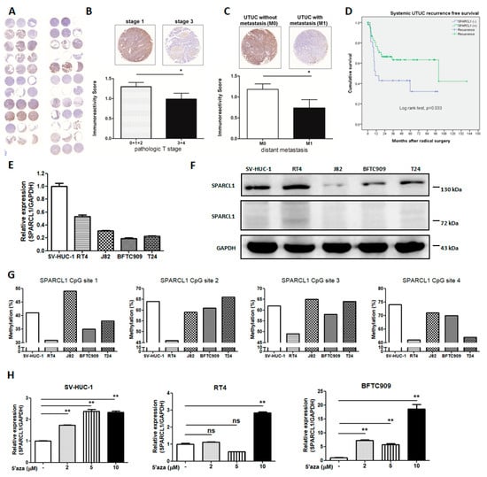 SPARCL1 was significantly greater in UTUC than in normal urothelium. Pyrosequencing-based analysis of our prospectively collected UTUC and normal urothelial tissue samples further proved significant