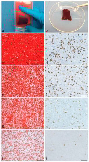 - Barbon, S.; Stocco, E.; Grandi, F.; Rajendran, S.; Borean, A.; Pirola, I.; Capelli, S.; Bagno, A.; Tavano, R.; Contran, M.; et al. Biofabrication of a novel leukocyte-fibrin-platelet membrane as a cells and growth factors delivery platform for tissue engineering applications. J. Tissue Eng. Regen. Med. 2018, 12, 1891–1906. [Google Scholar] [CrossRef]