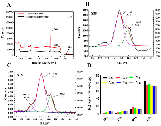 2.1.3. X-ray Photoelectron Spectroscopy (XPS) and Elemental Analysis of Raw and Cystamine-Modified Biochars