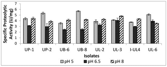 3.2. Effect of pH on the Extracellular Proteolytic Activity of LAB