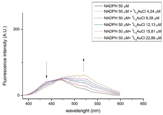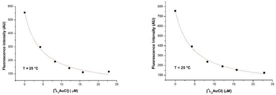 | 4L3AuCl | 520 and 485 nm | 16,483 and 15,095 cm−1 | 3.84 ± 0.29; n = 1.73; 3.32 ± 1.28 (10 °C); 2.0 ± 0.36 (−4 °C) | 5.05 ± 2.7 |