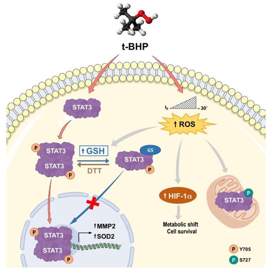 - Butturini, E.; de Carcereri Prati, A.; Chiavegato, G.; Rigo, A.; Cavalieri, E.; Darra, E.; Mariotto, S. Mild oxidative stress induces S-glutathionylation of STAT3 and enhances chemosensitivity of tumoural cells to chemotherapeutic drugs. Free Radic. Biol. Med. 2013, 65, 1322–1330. [Google Scholar] [CrossRef]