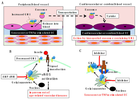 - Sasaki, N.; Itakura, Y.; Toyoda, M. Ganglioside GM1 Contributes to the State of Insulin Resistance in Senescent Human Arterial Endothelial Cells. J. Biol. Chem. 2015, 290, 25475–25486. [Google Scholar] [CrossRef]