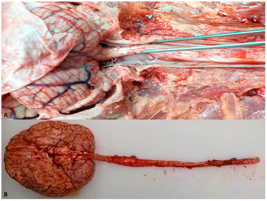 Alternatively, the anterior approach also allows the complete removal of the brain with the spinal cord (Figure 3).