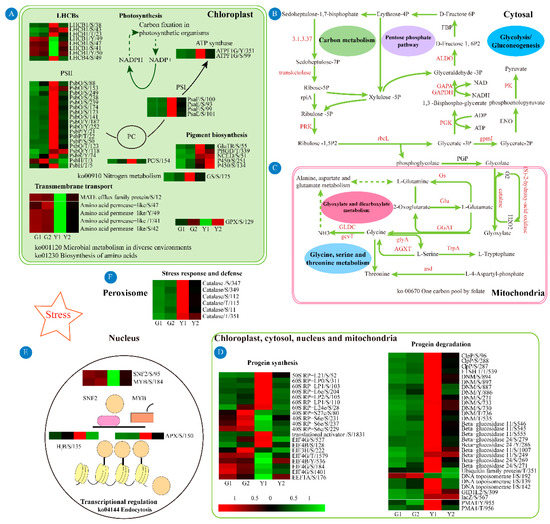 - Motohashi, R.; Rodiger, A.; Agne, B.; Baerenfaller, K.; Baginsky, S. Common and specific protein accumulation patterns in different albino/pale-green mutants reveals regulon organization at the proteome level. Plant Physiol. 2012, 160, 2189–2201. [Google Scholar] [CrossRef]
