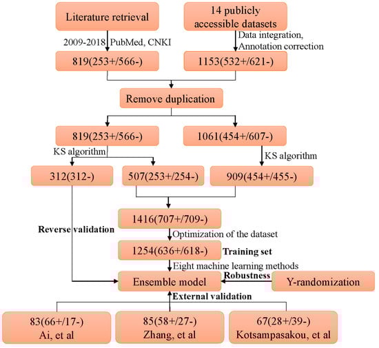 - Machine learning algorithms are known to work best on balanced datasets. Imbalanced datasets usually bring challenges to the development of in silico models, and may lead to biased performance of prediction models established [51]. To avoid the risk brought by unbalanced datasets, the Kennard–Stone algorithm was used to balance the datasets provided by prior studies and the present study. Finally, we acquired a large-scale balanced dataset for hepatotoxicity, including 707 positives and 709 negatives, which were used for the following analysis.