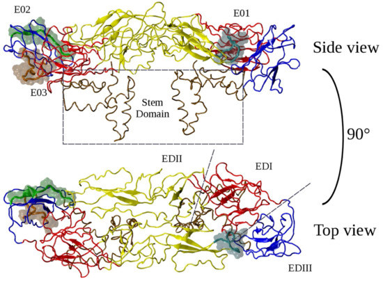 - Rouvinski, A.; Guardado-Calvo, P.; Barba-Spaeth, G.; Duquerroy, S.; Vaney, M.-C.; Kikuti, C.M.; Sanchez, M.E.N.; Dejnirattisai, W.; Wongwiwat, W.; Haouz, A.; et al. Recognition determinants of broadly neutralizing human antibodies against dengue viruses. Nature 2015, 520, 109–113. [Google Scholar] [CrossRef] [PubMed]