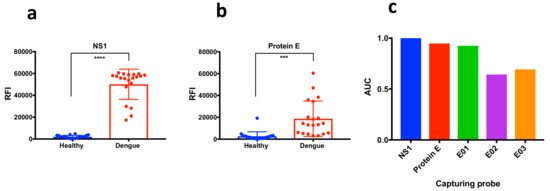 - Dussart, P.; Labeau, B.; Lagathu, G.; Louis, P.; Nunes, M.R.T.; Rodrigues, S.G.; Storck-Herrmann, C.; Cesaire, R.; Morvan, J.; Flamand, M.; et al. Evaluation of an Enzyme Immunoassay for Detection of Dengue Virus NS1 Antigen in Human Serum. Clin. Vacc. Immunol. 2006, 13, 1185–1189. [Google Scholar] [CrossRef]