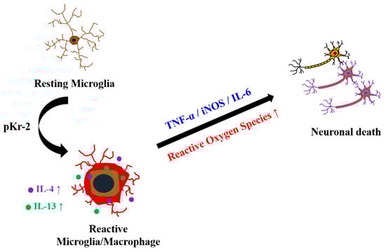 - Won, S.Y.; Kim, S.R.; Maeng, S.; Jin, B.K. Interleukin-13/Interleukin-4-induced oxidative stress contributes to death of prothrombinkringle-2 (pKr-2)-activated microglia. J. Neuroimmunol. 2013, 265, 36–42. [Google Scholar] [CrossRef] [PubMed]