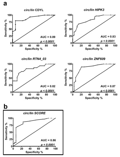 2.3. DM1-circRNAs Distinguish DM1 Patients from Controls