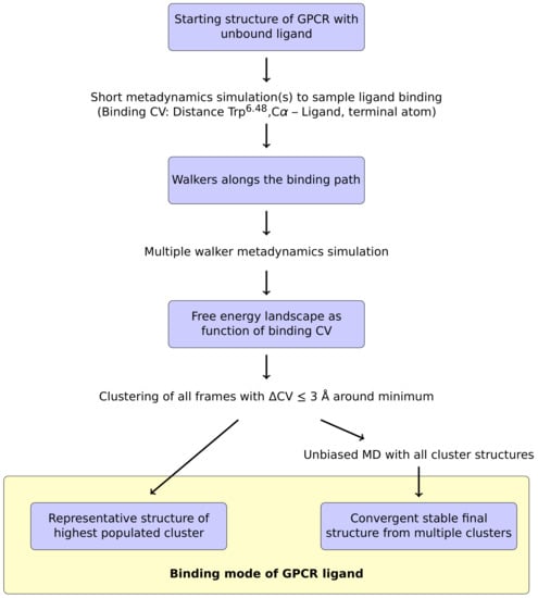 Overview of the proposed metadynamics-based protocol for the determination of ligand modes to GPCRs. See text for a detailed description.