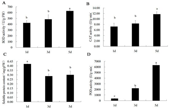 2.5. SOD, CAT, POD Activity and Soluble Protein Content in Petals of B. acuminata