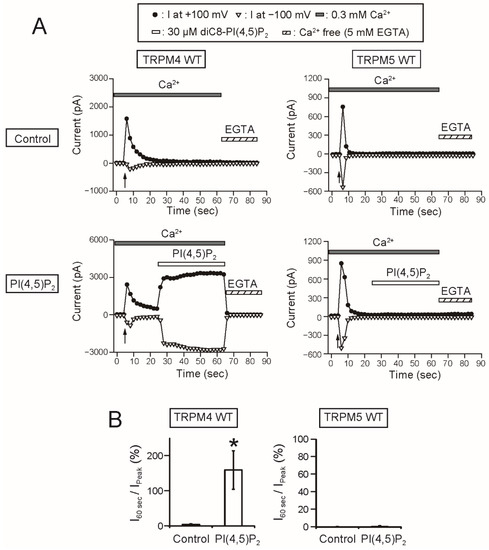 2.3. The Responsiveness to PI(4,5)P2 and PIP3 of rTRPM5 Differed from that of rTRPM4