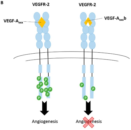 | VEGF-Axxxb | Anti-angiogenic. Downregulated in cancer, diabetic retinopathy, Denys Drash syndrome, retinal vein occlusion. Upregulated in systemic sclerosis and asthma [33,38] | |