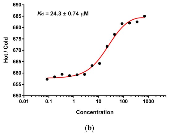51. Jerabek-Willemsen, M.; Wienken, C.J.; Braun, D.; Baaske, P.; Duhr, S. Molecular interaction studies using microscale thermophoresis. Assay Drug Dev. Technol. 2011, 9, 342–353. [Google Scholar] [CrossRef]