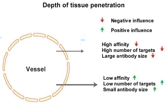 Figure 8. Factors influencing antibody penetration depth in the target tissue, according to Smith [61].