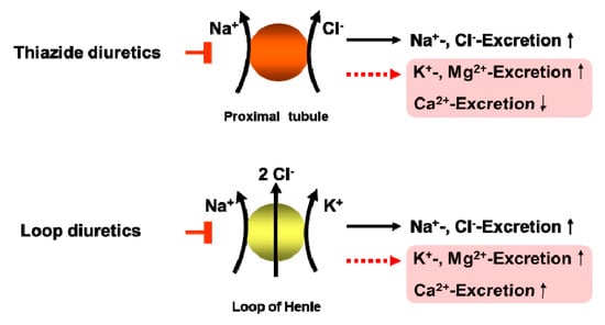 - Kisters, K.; Gröber, U. Magnesium and thiazide diuretics. Magnes. Res. 2019. [Google Scholar] [CrossRef]