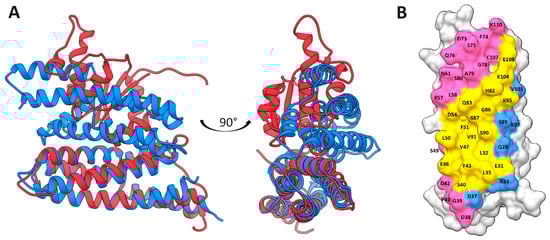 - Sali, A.; Blundell, T.L. Comparative protein modelling by satisfaction of spatial restraints. J. Mol. Biol. 1993, 234, 779–815. [Google Scholar] [CrossRef]