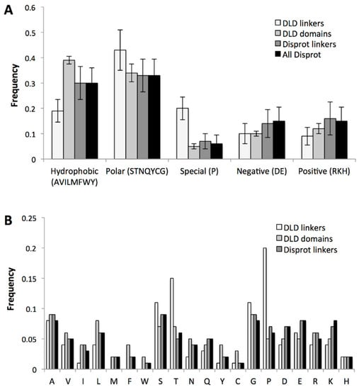 4.6. Amino-Acid Composition and Length Distribution of Linkers