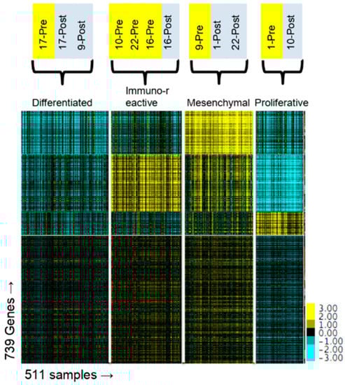 2.2. Chemotherapy Effects on Gene Expression Are Stronger than the Effects of Inter-Patient Heterogeneity