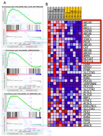 - Subramanian, A.; Tamayo, P.; Mootha, V.K.; Mukherjee, S.; Ebert, B.L.; Gillette, M.A.; Paulovich, A.; Pomeroy, S.L.; Golub, T.R.; Lander, E.S.; et al. Gene set enrichment analysis: A knowledge-based approach for interpreting genome-wide expression profiles. Proc. Natl. Acad. Sci. USA 2005, 102, 15545–15550. [Google Scholar] [CrossRef]