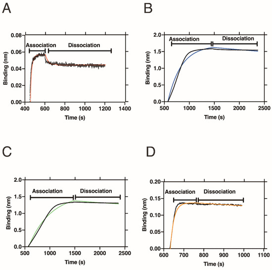 The obtained binding data were analyzed using a 1:1 local analysis mode applied with association and dissociation step corrections by the BLItz Pro1.2 software (ForteBio). The reference measurements were subtracted during data analysis to determine ka, kd and KD.