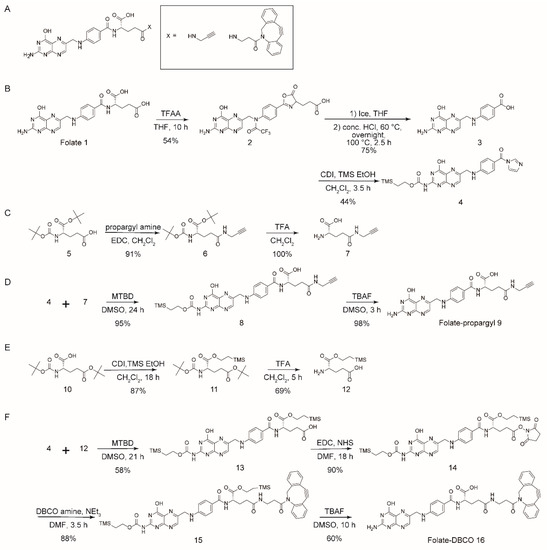 Synthetic schemes of folate derivatives are presented in Figure 6. Each compound was synthesized and confirmed as follows.