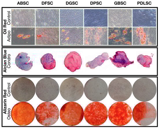 To further characterize the stemness of the different populations, trilineage differentiation was induced and evaluated as follows.