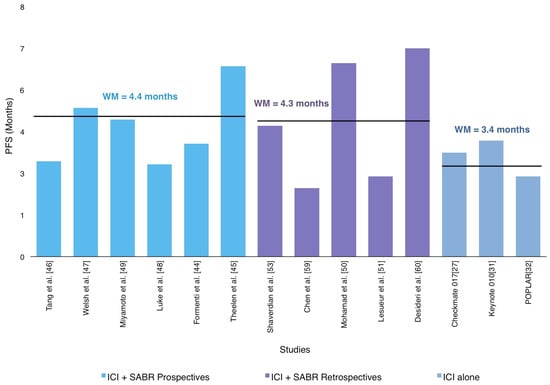 | AntiPD1/antiPD-L1 + SABR | 14.0 (2,9–33) | 14,5% | Pneumonitis, asthenia, breakthrough pain, colitis, neurological and hepatic toxicity |