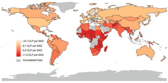 World incidence of cleft lip/palate per surgeon, anthologist, and obstetrician (SAO) in each country. Reproduced from Massenburg et al. (2018) [] with permission from Springer ©.