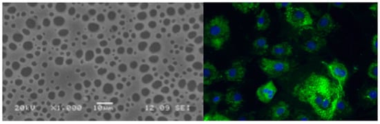 Recent advances in macromolecular sciences and tissue engineering methods have made it possible to efficiently generate several human artificial tissues including the oral mucosa and maxillofacial bone such as cleft palate []. Several synthetic polymer scaffold materials have been used for these purposes including poly (ε-caprolactone) (PCL), poly(lactic acid) (PLA), poly(glycerol sebacate) (PGS), poly (lactide-co-glycolide) (PLGA), or polyhydroxyalkanoates (PHA), among others []. These polymers can be synthesized in large quantities under controlled conditions, thus ensuring uniform and reproducible properties while reducing the risks of infections and immunogenicity []. For example, Flores-Cedillo et al. prepared membrane composites made of multiwall carbon nanotubes (MWCNTs) with PCL, demonstrating their ability to allow adhesion and proliferation of human dental pulp stem cells (HDPSCs) (Figure 6), and promoting their osteogenic differentiation toward bone like phenotypes permitting bone regeneration, and thus suitable for CL/P regeneration.